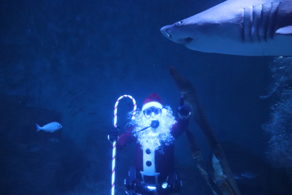 Every Saturday and Sunday from December 6 through December 21 at 10:30 a.m. and 12:30 p.m., watch Santa make a splash as he dives into the Ocean Beyond the Sound exhibit and swims alongside sand tiger sharks! It’s an unforgettable holiday tradition guests won’t want to miss. Limited extra dives will take place on December 23, 24, and 26.